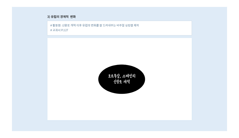 | 교과 단원 | 미래엔 역사 2 / III. 지역 세계 교류의 변화 4. 신항로 개척과 유럽 지역 질서의 변화 |